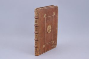 l'index. Basane fauve, encadrement à la du Seuil, blason avec trois fleurs de lys au centre des plats. (Quelques menus défauts aux coiffes et aux coins). L'Histoire Romaine de Velleius Paterculus couvre la période allant de la prise de Troie au consulat de Marcus Vinicius (30 ap. JC). Le seul manuscrit conservé de cette Histoire a été publié en 1520 à Bâle par Beatus Rhenanus. Il a depuis été perdu. Cachet gras XIXème sur le titre ; Semin. Isorense Biblioth. (Séminaire d'Iseure, près de Citeaux)