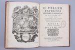 VELLEIUS PATERCULUS, Caius (Circa 20 av. JC -30 ap. JC). Historiae romanae ad M. Vinicium Cos. libri duo. In Usum Serenissimi Delphini.. Paris, Frédéric Léonard. 1675 In-4°. Frontispice gravé par Cossin, (15 ff), 151 pages, (44 feuillets) pour...