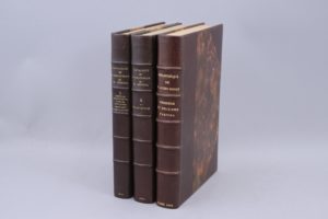 précieux décrits : manuscrits avec miniatures, incunables, livres à figures sur bois XV et XVIème, e.o. des grands classiques français, riches reliures, importante collection de Restif de la Bretonne etc.. 2) Catalogue de la Bibliothèque de M. Ricardo Heredia, comte de Benahavis. Première (deuxième) partie. Paris, 1891. 2 vol. gd in-8, 1/2 maroquin havane à coins, tête dorée. 332 et 485 pages. Nombreuses illustrations in-texte. 2836 livres précieux décrits, en particulier de très nombreux ouvrages espagnols des XV, XVI et XVIIème siècles, des romans de chevalerie espagnols, des ouvrages imprimés au Mexique, Pérou, Chili aux XVI, XVII et XVIIIème siècles etc... . Résultats marqués. En tout 4 parties en 3 volumes.