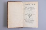 BOUHOURS, Dominique (1628-1702). — Doutes sur la langue françoise proposée à Messieurs de l'Académie Françoise par un gentilhomme de province. — Seconde édition.. — Paris, Sébastien Mabre-Cramoisy. — 1682 — In-12.