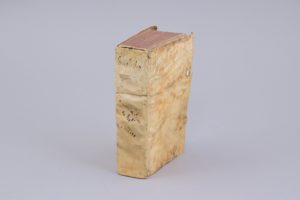 Vélin souple à recouvrements. Reliure du temps. (Reliure très manipulée ; mouillures saines sur les premiers feuillets ; feuillet d'errata fortement érodé, avec perte de quelques lettres.).