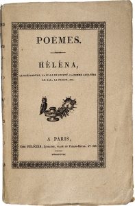 Édition originale de la plus grande rareté. Des dix poèmes réunis dans ce recueil, le premier publié par Vigny, sous le voile de l'anonymat, seul Le Bal avait été imprimé dans une revue ; Héléna, Le Malheur et Le Bain ne seront pas réimprimés avant le XXe siècle, et parmi les autres, certains subiront des retranchements dans les éditions suivantes. Superbe exemplaire broché, tel que paru et très pur, condition des plus rares. De la bibliothèque Jules et Léon Le Roy, avec ex-libris.