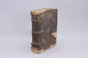Reliure du temps. (Nerfs rompus ; manques importants à la reliure. Très fortes rousseurs et mouillures dans tout l'ouvrage, avec délitement des marges de queue en fin d'ouvrage., -sans atteinte au texte.. Défauts divers.).