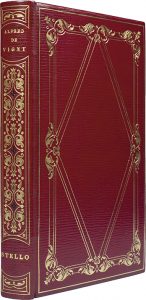 VIGNY (Alfred de). Stello, ou les Diables bleus (Blue Devils). Les Consultations du Docteur-Noir. Première Consultation. Paris, Charles Gosselin, Eugène Renduel, 1832. In-8, maroquin rouge à long grain, encadrement de filets dorés ponctués aux...