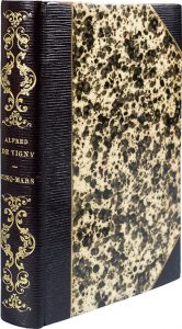 VIGNY (Alfred de). Cinq-Mars ou une conjuration sous Louis XIII. Huitième édition, précédée de Réflexions sur la vérité dans l'art. Paris, Charpentier, 1842. In-12, demi-maroquin à long grain violet avec coins sertis d'un filet doré, dos...