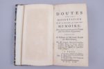Deshauterayes, Michel-Ange-André (1724-1795) Doutes sur la dissertation de M. de Guignes qui a pour titre : Mémoire dans lequel on prouve que les Chinois sont une colonie égyptienne. — Paris, Prault et Duchesne, 1759. — In-16, I-IV et 5-89 pages, (2 ff). 1/2 percaline XIXème. (Salissure marginale page 28) Deshauterayes était interprète pour les langues orientales et professeur d'arabe au Collège de France .