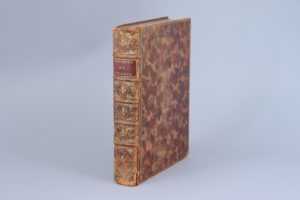 Plein veau porphyre, triple encadrement de filets droits, dos orné. Toutes tranches dorées. (Mors fendus, usures aux coiffes et aux coins)..
