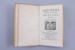 Bel exemplaire de la traduction de Pierre du Ryer (1605-1658) et Louis Giry (1596-1665), deux des premiers académiciens français, de ces deux oeuvres de jeunesse d'Isocrate : comment faire l'éloge de deux personnages indéfendables : la Belle Hélène, dont on sait l'histoire tragique, et Busiris, roi d'Egypte, qui voulut sacrifier Héraclès.