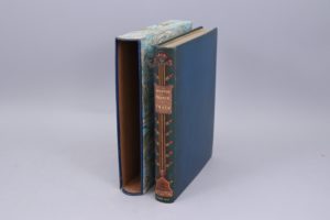 Large décor intérieur composé de 5 filets droits avec fleurons mosaïqués dans les angles. Tête dorée. Etui. Reliure signée Blanchetière.