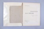 2) Jules Grand-Jouan : Nantes la Grise. Lithographies originales d'après dessins sur nature. Nantes, Guist'hau éditeur, 1899. Petit in-folio. En feuilles sous cartonnage vert et doré de l'éditeur. 48 feuillets imprimés au recto seul ; 48 lithographies dont 21 hors texte, en noir ou en couleurs, parmi lesquelles 8 imprimées sur papier bleu. Tirage à 500 exemplaires "sur Vidalon imprimé d'un seul côté". Premier ouvrage illustré par Grand-Jouan.