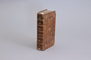 Plein veau fauve, encadrement à froid avec fleurons d'angle dorés ; fleuron central ; dos orné de fleurons dans les entre-nerfs.