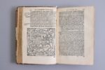 Elle est illustrée de 8 bois gravés, dont une carte du monde connu de l'antiquité, à mi-page. Les Saturnales de Macrobe, auteur du Vème siècle de notre ère, appartiennent au registre des banquets philosophiques : on y traite des fêtes romaines, et des Saturnales en particulier, de philosophie et de Virgile, mais encore de la nourriture et des propriétés des aliments.