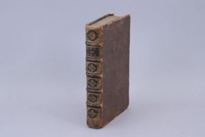 Veau du temps. (Reliure solide, mais mors fendus et coiffes et coins émoussés).