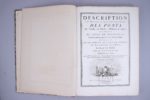 Cette publication luxueuse de l'Imprimerie Royale est imprimée sur papier vélin fort. Le texte est mis en valeur par des encadrements gravés. Jean-Rodolphe Perronet est à l'origine de bon nombre des grands travaux publics réalisés au XVIIIème siècle. Il a dressé les plans des ponts de Neuilly, de Nemours, de la Concorde (Pont Louis XVI), de Sainte Maxence sur l'Oise, de Nemours sur le Loing et en a surveillé l'exécution. On lui doit aussi le grand égout de Paris, le canal de Bourgogne, etc... Il est l'inventeur d'extraordinaires machines représentées dans les illustrations : dragues, pompes, "camions", scies sous-marines, etc...
