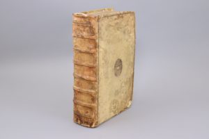 Plein daim retourné, encadrement et médaillon central. (Reliure solide, mais présentant de muliples défauts : épidermures, manques aux coiffes et aux coins ; une partie du dos a été remontée.