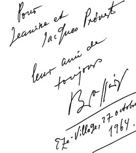 Édition originale, illustrée de 53 photographies de l'auteur. Exemplaire du service de presse. Bel envoi autographe signé de Brassaï à Jacques Prévert et son épouse Jeanine, daté du 27 octobre 1964 à Èze-Village. Le poète et le photographe se connaissaient depuis les années 1930 et avaient travaillé ensemble sur plusieurs projets, tels le ballet Rendez-vous en 1945 et les recueils Trente dessins en 1946 et Graffiti en 1961. C'est d'ailleurs une photographie de Brassaï qui orne la couverture de l'édition originale de Paroles, parue en 1946. Le volume a figuré dans la vente de la collection Prévert (2010, n°1). Couverture salie, petite mouillure en marge de 2 feuillets.