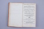 b) Horace : Les Odes. Traduites par M. de Reganhac. Paris, Valade, 1781. 2 volumes in-8, basane du temps, dos ornés. (1 mors fendillé)