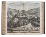 Première édition française de cet ouvrage fondamental, le plus beau livre existant sur la Savoie, dont l'édition originale a paru en latin en 1682, la traduction étant due à Jacques Bernard. Illustré de deux vignettes de titre et 140 planches gravées à l'eau-forte, le plus souvent sur double page, certaines dépliantes, dont la plupart ont été dessinées par Giovani Tomaso Borgonio et gravées par Joannes de Ram ; toutefois les portraits de Charles-Emmanuel II et de son épouse Marie-Jeanne-Baptiste de Savoie sont dus au talent de Robert de Nanteuil, graveur ordinaire du Roi Louis XIV. Les textes sont dus principalement à Emanuele Tesoro et Pierre Gioffredo. Les vues cavalières représentent les principales villes et sites remarquables de la Savoie, du Piémont, de la vallée d'Aoste et du comté de Nice, alors réunis dans le royaume de Piémont-Sardaigne.