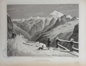 Édition originale, illustrée de 12 titres gravés avec vignette, 13 cartes et 84 vues gravées sur acier hors-texte. Description des cols du Petit et du Grand Saint-Bernard, du Montgenèvre, du Mont-Cenis, du Saint-Gothard, du Stelvio, de la Corniche, du Grimsel, du San Bernardino et du Splugen, du Brenner, de Tende et du Simplon. Cet ouvrage est une véritable encyclopédie illustrée des cols des Alpes ; Walter Scott, remerciant l’auteur pour l’envoi de ce livre, dira à ce propos : « En brossant clairement le tableau si intéressant … aux coutumes si particulières, vous avez ajouté un chapitre précieux à l’histoire de l’Europe dont les régions alpines constituent une figure si distinguée et attirante ».