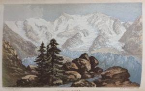 Londres, Longman, Brown, Green, Longmans, and Roberts, 1859. In-8°, reliure plein veau glacé, dos à nerfs richement orné, pièce de titre au dos, double filet d'encadrement sur les plats, tranches jaspées (menus frottements) (reliure de l'époque). Première édition, rare, illustrée d'une vignette de titre coloriée, de 8 figures gravées sur bois dans le texte, de 4 planches hors-texte en chromolithographie et d'une carte dépliante. Cet ouvrage descriptif contient essentiellement des récits d'excursions sur des belvédères relativement faciles d'accès (voir en particulier la vue du Mont-Blanc prise du Mont de la Saxe).