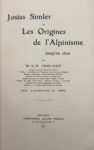 COOLIDGE (William Augustus Brevoort) — Josias Simler et les origines de l'alpinisme jusqu'en 1600. Grenoble, Allier Frères, 1904. 1 très fort vol. grand in-8°, reliure plein vélin crème, dos à nerfs, pièce de titre au dos, non rogné (salissures) (reliure de l'époque)