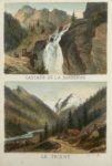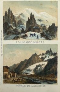 Plusieurs vues représentent Chamonix et le massif du Mont-Blanc (Le Mont-Blanc, Servoz, Sallenche, Chamouny, la Mer de Glace, cascade d'Arpennaz, Saint-Gervais, pont de Saint-Martin, glacier de l'Argentière, cascade de Bérard).