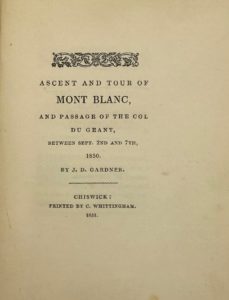 GARDNER (John Dunn) — Ascent and tour of Mont-Blanc, and passage of the col du géant, between sept. 2nd and 7th, 1850. Chiswick, par l'auteur et imprimé par Charles Whittingham, 1851.