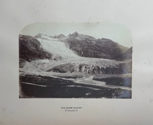 In-4°, Reliure bleue de l'éditeur, décor, encadrement de filets et titre dorés sur le premier plat, dos richement orné, tranches dorées (menus frottements). Édition originale. Illustré d'une carte à double page et de 28 photographies contrecollées d'Ernest Edwardes (tirages albuminés), dont 11 hors-texte et 17 dans le texte. C’est le premier ouvrage de montagne entièrement illustré de photographies. Quelques rousseurs. Il existe quelques petites variantes dans les exemplaires au niveau des illustrations. Un chapitre est dédié aux difficultés d’effectuer des photographies au collodion humide en haute montagne. On peut lire dans la préface : « L'auteur du présent ouvrage a pensé qu'il pourrait servir un but modeste, mais utile, par l'obtention d'un ensemble de photographies qui devrait montrer aussi complètement que possible la nature des glaciers et de leurs divers appendices. Le texte doit compléter l'effet des images, et leur permettre de parler pour elles-mêmes. Pour les alpinistes expérimentés il y a deux ou trois récits d'ascensions d'une certaine difficulté et d'intérêt considérable. Pour le voyageur moins ambitieux il y a des excursions plus faciles, qui ne semblent pas être bien connues, et des conseils qui peuvent leur être de quelque utilité pour jouir des sites généralement considérés comme la propriété exclusive des alpinistes. » H.B. George y relate les ascensions qu'il a effectuées avec E. Edwardes, A. Mortimer et G. Young au cours de l'été 1865 : Jungfrau depuis Wengen, Wetterhorn, Lauberhorn, Gross Nestorn...