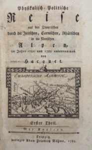 HACQUET (Belsazar) — Physikalisch= Politische Reise aus den Dinarischen durch die Julischen, Carnischen, Rhätischen in die Norischen Alpen, im Jahre 1781 und 1783 unternommen von Hacquet. Leipzig, A. F. Bohme, 1785.
