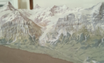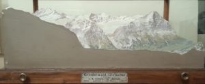 IMFELD (Xavier) — Glacières de Grindelwald. Vers 1890. Plan relief en plâtre peint, 50 x 46,4 x 17 cm, dans une vitrine, posé sur un plateau coulissant permettant de le sortir aisément (une vitre fendue en coin).