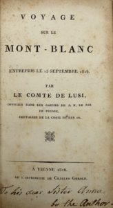 LUSI (Frédéric Guillaume de) — Voyage sur le Mont-Blanc entrepris le 15 septembre 1816. Vienne, de l'imprimerie de Charles Gerold, 1816.