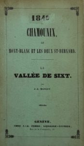 MANGET (Jacques Louis) — Chamounix, le Mont - Blanc et les deux St. - Bernard. La vallée de Sixt. Genève, J. A. Combe, 1840-1842. In-12, cartonnage vert pâle de l'éditeur.