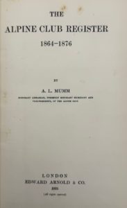 MUMM (Arnold Louis) — The Alpine Club Register 1857-1863, 1864-1876, 1877-1890. Londres, Edward Arnold & Co., 1923-1925-1928. 3 vol. in-8°, reliures pleine toile rouge à la Bradel, titres dorés au dos (reliures homogènes de l'éditeur).
