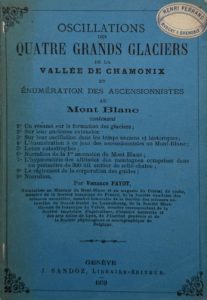 PAYOT (Venance) — Oscillations des quatre grands glaciers de la vallée de Chamonix et énumération des ascensionnistes du Mont-Blanc. Genève, J. Sandoz, 1879. In-12, broché, couvertures imprimées.
