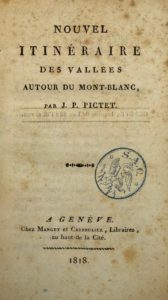 PICTET (Jean-Pierre) — Nouvel itinéraire des vallées autour du Mont-Blanc. Genève, Manget e Cherbuliez, 1818. In-12, cartonnage ancien, étiquette de titre plus récente collée au dos.