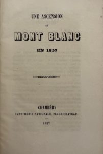 ROUTIER DE GRANDVAL (Comte Charles) — Une ascension au Mont Blanc en 1857. Chambéry, Imprimerie Nationale, 1857. In-12, reliure demi-chagrin à coins, couvertures conservées (reliure moderne).