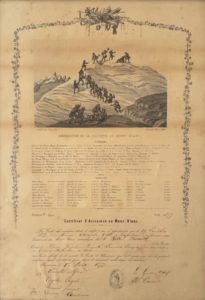 WEIBEL (Charles) — Certificat d'ascension au Mont-Blanc. Genève, Soulier et Wirth lithographes, 1877. Une feuille encadrée (320 x 480 mm).