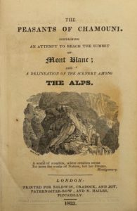 X (ANONYME) — The peasants of Chamouni : containing an attempt to reach the summit of Mont Blanc, and a delineation of the scenery among the Alps. Londres, Baldwin, Cradock, & Joy, 1823.