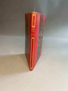 ASSELINEAU (Charles). L’Enfer du bibliophile. Paris, L. Carteret, 1905. In-8, bradel demi-maroquin rouge avec coins, filet, non rogné, couverture et dos (E. Carayon). 6 pointes sèches en couleurs par Léon Lebègue.Tirage à 300 exemplaires, celui-ci sur vélin, hors commerce.Exemplaire offert au vicomte de Marsay.Piqûres sur les tranches et quelques-unes sur les plats.