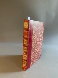 AUMALE (Henri d’Orléans, duc d’). Les Zouaves et les chasseurs à pied. Paris, La Société des Amis des Livres, 1896. In-8, demi-maroquin rouge à long grain avec coins, filet, dos orné, couverture et dos (Mercier sr de Cuzin). 120 illustrations de Charles Morel, gravées sur bois. Tirage à 123 exemplaires sur vélin de cuve. Couverture tachée, piqûres sur les tranches.