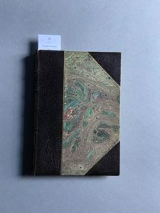 BERGERET (Gaston). Journal d'un nègre à l'Exposition de 1900. Paris, L. Conquet, Carteret et Cie, 1901. In-12, demi-maroquin noir avec coins, dos orné, motifs de feuillages fleuris dorés et mosaïqués, tête dorée, non rogné, couverture et dos (Champs-Stroobants). Livre d'étrennes bibliophiliques offerts par l'éditeur Léopold Carteret, orné de 79 aquarelles d'Henry Somm. Un des 100 exemplaires sur japon, celui-ci offert à M. Marcel Holtzer. De la bibliothèque Claude Goumain (2018, n°213).