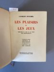 DUHAMEL (Georges). Ensemble 3 ouvrages. — Les Élégies. Paris, Mercure de France, 1920. In-12, demi-maroquin vert olive, supra-libris Château de Vertcoeur doré sur le premier plat, dos orné, tête dorée, non rogné, couverture et dos (Yseux sr de Simier). Édition originale. Un des exemplaires sur hollande. Exemplaire du comte René Philipon (1869-1936), bibliophile et spécialiste des sciences occultes, avec son ex-libris gravé par J. de Andrada. Dos passé. — Journal de Salavin. Paris, Mercure de France, 1927. In-12, maroquin mosaïqué bicolore violet et bleu canard, dos lisse avec pièce de titre fauve, tête dorée, non rogné, couverture et dos (Reliure de l'époque). Édition originale. Un des exemplaires sur vergé pur fil. Traces de cire blanche à la reliure. —Les Plaisirs et les jeux. Mémoires du cuib et du tioup. Les Erispaudants. Paris, Éditions du Capitole, 1930. In-8 carré, bradel peint à recouvrement, filet rouge en encadrement, dos lisse titré en noir et rouge, tête dorée, non rogné, couverture et dos (Lesalle rel.). 12 compositions originales à l’aquatinte et à l’eau-forte par Edy Legrand. Exemplaire sur vélin pur fil Lafuma.
