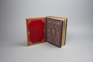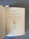 FRANCE (Anatole). La Rôtisserie de la reine Pédauque. Paris, Édouard Pelletan, 1911. Fort volume in-4, maroquin brun, large dentelle dorée et en partie mosaïquée de bleu et de rouge, dos orné dans le même goût, doublure de maroquin rouge ornée de filet d'encadrement et de motifs dorés aux angles et au milieu des côtés, gardes de soie peinte, tranches dorées, couverture et dos (G. Levitzky). 176 compositions d'Auguste Leroux gravées par Duplessis, Ernest Florian, Froment, Gusman et Perrichon. Tirage à 410 exemplaires plus 34 de présent. Un des exemplaires sur papier vélin du Marais, comprenant une suite des illustrations sur japon mince et une aquarelle originale à pleine page signée de l'artiste. Riche reliure en maroquin doublé de Levitzky. Coupes frottées.