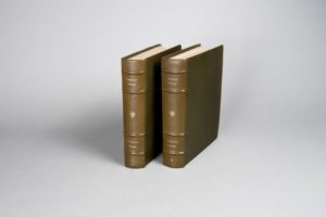 GAUTIER (Théophile). Le Capitaine Fracasse. Marseille, Éditions Le Corsaire, Albert Simide, 1947. 2 volumes in-4, chagrin vert olive, janséniste, non rogné (Reliure de l’époque). Aquarelles originales de Jean Gradassi reproduites par Edmond Vairel, enlumineur à Paris. Tirage à 390 exemplaires, celui-ci sur pur fil Johannot (sans la suite en noir annoncée à la justification).