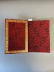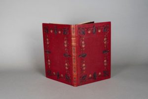 GAUTIER (Théophile). La Chaîne d’or. Préface de Marcel Schwob. Paris, A. Ferroud, 1896. In-8, maroquin rouge foncé, encadrement de feuilles d’acanthe bleu foncé et de guirlandes de roses mosaïquées, dos orné, encadrement intérieur orné d’une large bordure de feuilles d’acanthe dorées, doublure et gardes de soie brochée rouge, tranches dorées sur témoins, couverture et dos (E. Carayon). Illustrations de Georges Rochegrosse, gravées à l’eau-forte et mises en couleurs. Tirage à 200 exemplaires, celui-ci comportant une suite en noir des eaux-fortes. Dos légèrement passé.