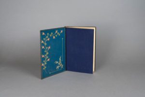 GAUTIER (Théophile). Jean et Jeannette. Paris, A. Ferroud, 1894. In-8, maroquin bleu foncé, janséniste, doublure de maroquin bleu clair orné de branchages fleuris au feuillage et fleurs rouges mosaïquées, gardes de reps bleu foncé, tête dorée, non rogné, couverture et dos (Charles Meunier). 24 compositions par Adolphe Lalauze. Tirage à 500 exemplaires, celui-ci sur Arches. Charmante doublure fleurie de Charles Meunier.