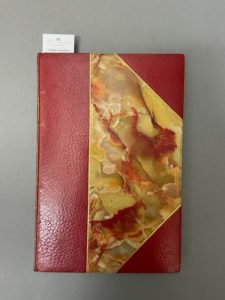 HENNIQUE (Nicolette). Les Douze labeurs héroïques. Préface de Mme Alphonse Daudet. Paris, Ferroud, 1903. Grand in-8, demi-maroquin rouge avec coins, dos lisse orné de motifs dorés et mosaïqués, tête dorée, non rogné, couverture et dos (Blanchetière-Bretault). 12 compositions dessinées et gravées par Gaston Bussière. Tirage à 150 exemplaires, celui-ci un des 100 sur vélin d'Arches. Page de faux-titre roussie.