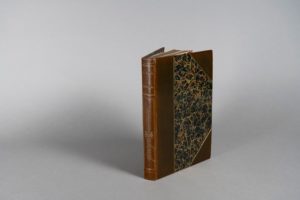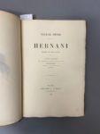 HUGO (Victor). Hernani. Drame en cinq actes. Paris, Conquet, 1890. Grand in-8, demi-maroquin olive avec coins, dos lisse orné, tête dorée, non rogné, couverture (Reliure de l'époque). Portrait par Achille Devéria et 15 compositions de Michelena gravées à l'eau-forte par Léon Boisson. Tirage à 500 exemplaires, celui-ci sur papier vélin du Marais. Dos passé.
