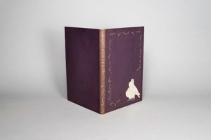 MARDRUS (docteur Jacques-Charles). Le Cantique des cantiques. Paris, Alphonse Jolly, [1950]. Grand in-4, box violet, premier plat orné en encadrement d'une guirlande stylisée or et à l'oeser blanc, et d'un couple de colombes mosaïquées se détachant sur un cœur tracé à froid, dos lisse orné avec rappel de la guirlande, titre doré, encadrement intérieur orné d'un listel vert avec sur les côtés des trèfles à quatre feuilles verts et de petits fers dorés aux angles, tête dorée, non rogné, couverture et dos, étui (I. Monod Lyon). 12 pointes-sèches à pleine page de Mariette Lydis. Tirage à 265 exemplaires, celui-ci sur vélin d'Arches. Reliure mosaïquée.