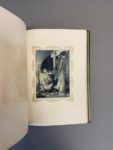 MUSSET (Alfred de). Les Nuits. La Nuit de mai – La Nuit de décembre – La Nuit d’Août – La nuit d’octobre. Préface de Edmond Haraucourt. Paris, J. Meynial, 1911. Grand-in-8, maroquin bleu foncé, jeu de sept filets dorés entourés de deux doubles filets dorés en encadrement, encadrement intérieur orné de deux doubles filets, doublure et gardes de reps ocre (G. Mercier sr de son père 1913). 4 planches hors texte et 4 vignettes par Luc Olivier Merson gravées par Ch. Chessa, et par Adolphe Giraldon gravées par E. Florian, un titre, un faux-titre et des encadrements à chaque page. Tirage à 120 exemplaires sur papier vélin d’Arches. Chemise passée.